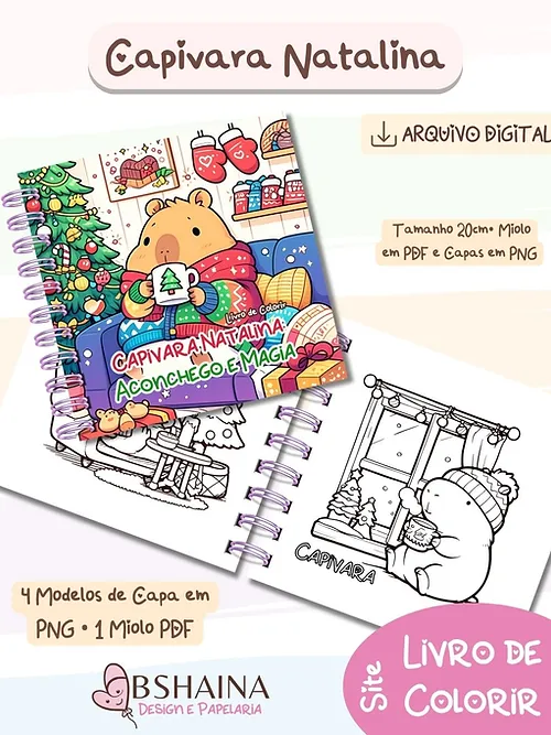 Arquivo Natal Livro de Colorir Capivara Natalina - Bia Shaina