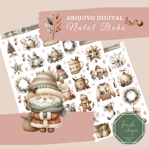 Kit Digital Printables Natal Boho em PDF (Toca da Colagem)